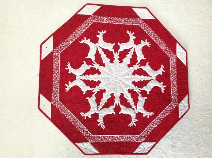 | Design Source - Description | I made this quilt for a Red & White Quilt Guild Challenge. The deer are hand appliqued and the piece is embellished with beads. |