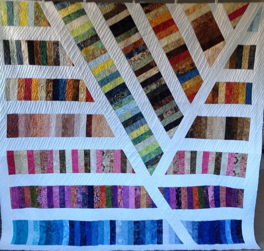 lotti Die Farben Eurer Lebenswege - Pieced, adding a number of Bali Pops and other batik strip sets. Having fun and thinking of everything but the process :0)
