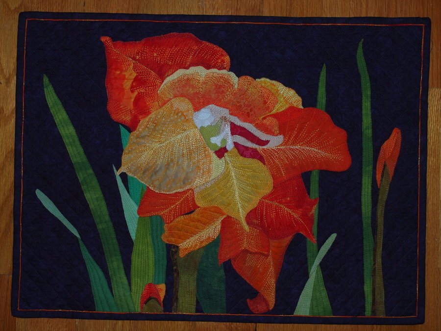| Design Source - Description | This was a lot of FUN!!! I was not happy with my fabric choices when I was done fusing the pieces down. I gave it dimension and depth with thread painting. I used a LOT of different shades of threads. FUN!!! |