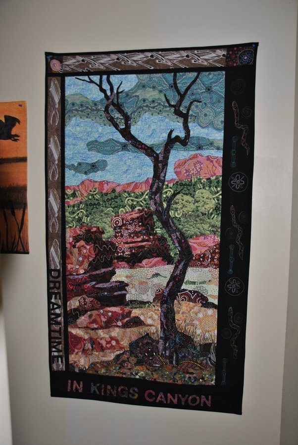 valerieg Dreamtime in Kings Canyon - This was inspired by a photo taken inThe northern Territory.I've used all Aboriginal designed fabrics & it;s raw edge appliquéd & free motion quilted.