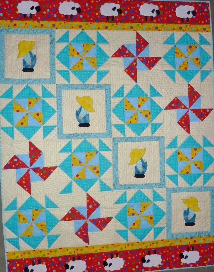 Ariane Little Farmer - Overall Sam. Accuquilt Blocks. Own piecing & quilting.