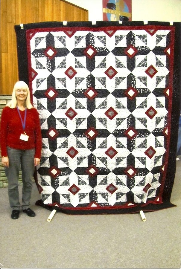 Nubbins Clarice In Diamonds - I made this quilt during a class. My aunt who was 100 years old died while I was making it. I named it in memory of her. This is material left over from my grandsons graduation quilt. This is the third quilt made from that material.