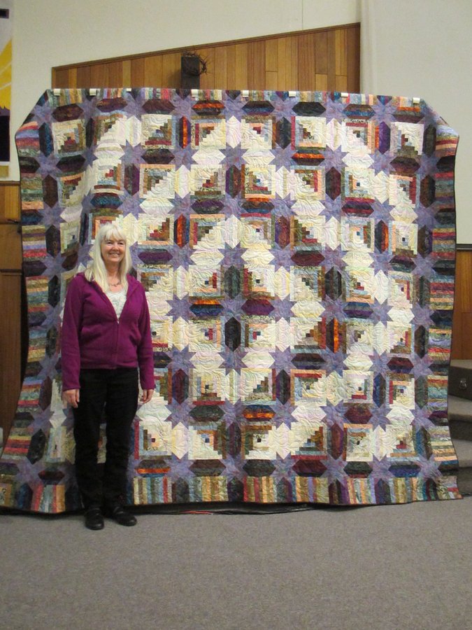 Nubbins The Large Tickle - Originally I thought this quilt would be made for my camper which is a double and then it got way too LARGE. It was 122 inches square which was way too large for my king size bed so I had to take some blocks off one side so it would fit. Some day I am going to learn how to make a small quilt. It will remind me of Uncle Roger who died March 2013 while I was finishing it.