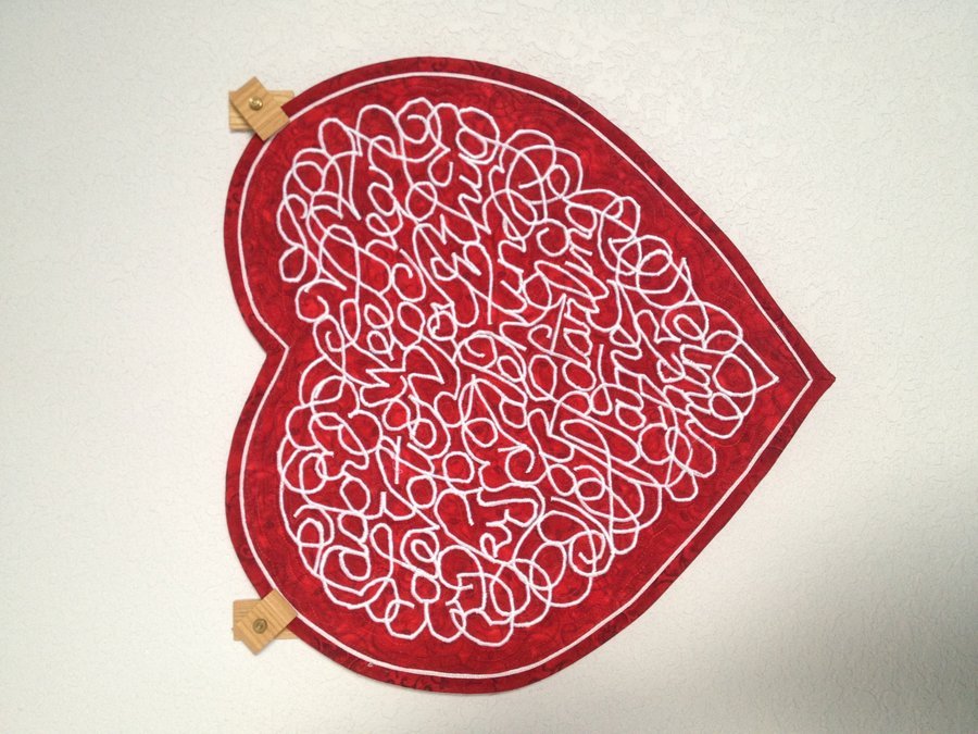 | Design Source - Description | Free motion embroidered words if love. The quilt is inspired by a valentine card I saw. |