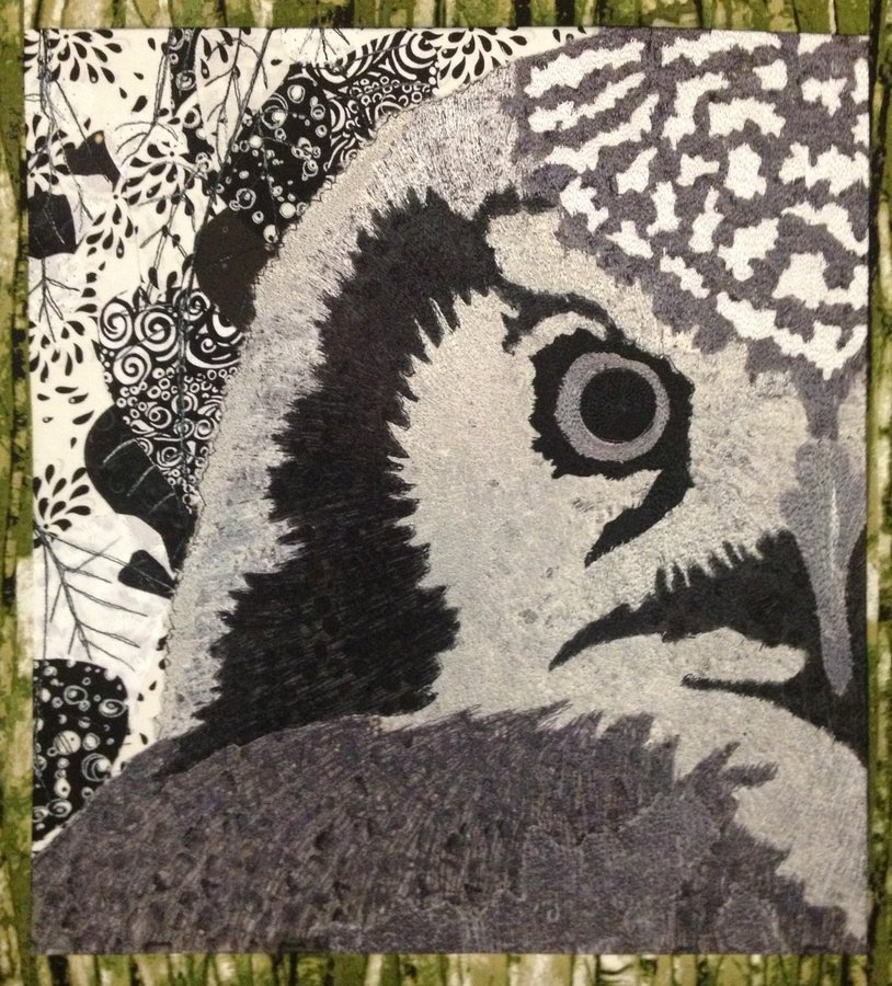 QuiltingKaren Keeping My Eye On You - This quilt was constructed for a class I took with Katie PM, where we were to take a photograph, and make a black and white quilt out if it with 7 grey values. This quilt is heavily thread painted after the raw edge appliqué was completed.