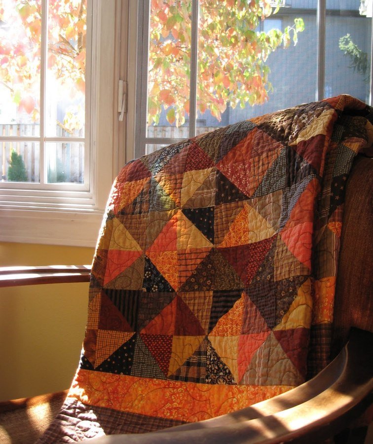 laughingStitching Pumpkin Spice - a fun half square triangle quilt. to see more pictures...Visit my blog here: Chezstitches.blogspot.com