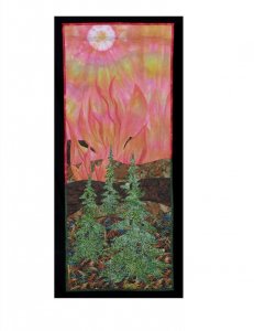 lemonade22 "Rim Fire" Yosemite - I was moved by pictures of towering flames burning my favorite park. I submitted a picture to an on-line show at www.parks.ca.gov. The flames and sky fabrics are hand painted, trees appliqued, free-motion stitched. I donated it to raise funds for our fire dept.