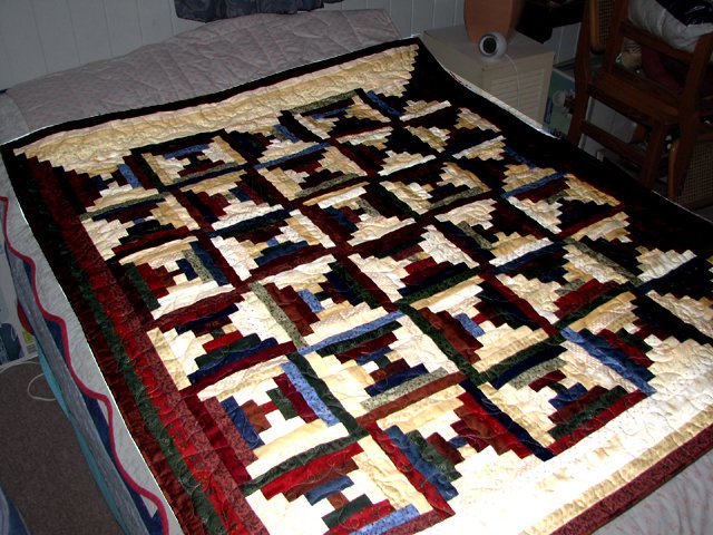 Bettyboo Courthouse steps - I offered to sew this quilt up from a kit for a charity auction to raise funds for Cancer Research. I also quilted it and bound it. Had enough of the fabric left over to also make a cushion in the same pattern.