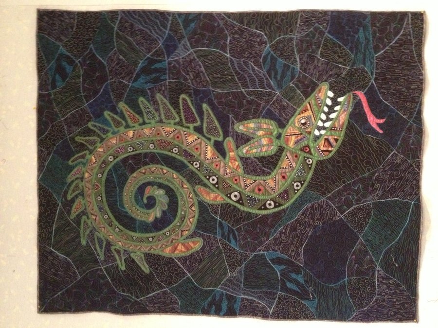 idyllic1 Water serpent - Whole cloth quilt, textile paint, threads