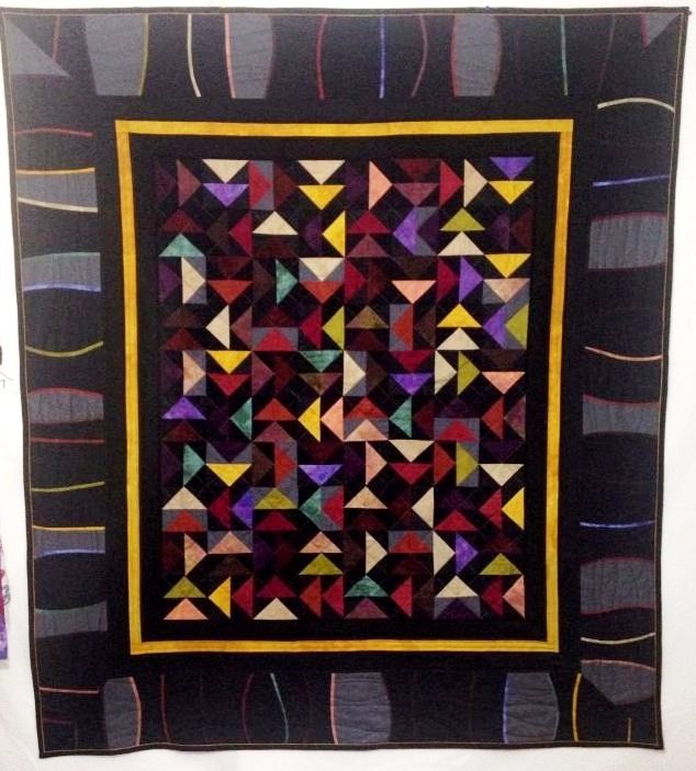Libbie Flying Geese - A pattern by Alex and fabric by Ricky results in a beautiful quilt. The binding is Ricky's piped technique that was demonstrated in a Super Seminar.