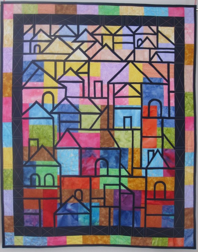 Elennah City view - Wallhanging with stained glass technique presented in Daphne Greig's and Susan Putney Mark's book "Simple Stained Glass Quilts"