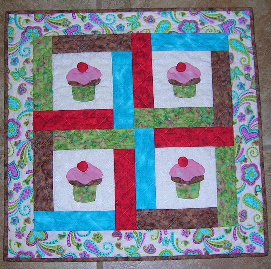 | Design Source - Description | Cupcake quilt for Grace. 100% assorted cotton fabric. Machine pieced, hand appliqued and machine quilted. |