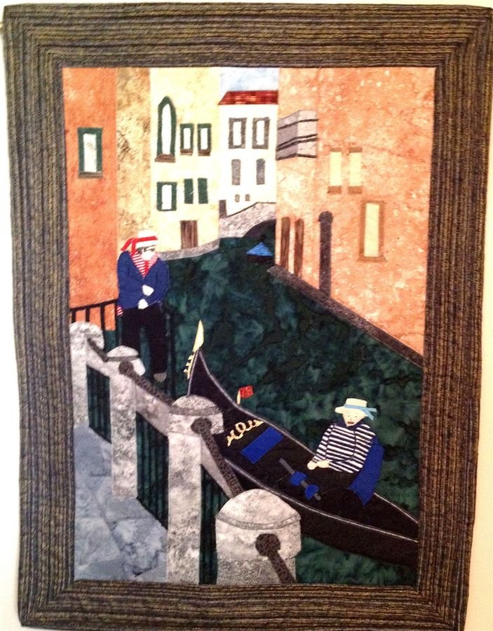 jesmith Waiting for Lovers - "Waiting for Lovers" was based on a photo taken in Venice in 2012 while on a camera club photo tour. The quilt is raw edge, fused, machine appliqued and quilted and represents a wonderful memory of a wonderful trip.