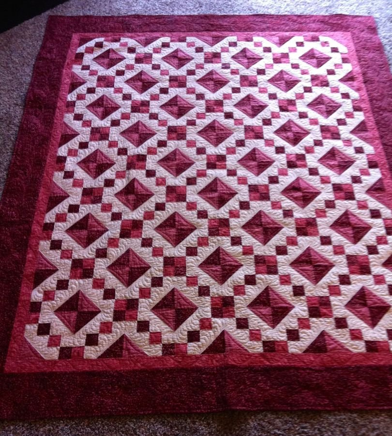 | Design Source - Description | I have made versions this before in "jewel" colors but my daughter wanted just reds and off whites for her wedding quilt. |