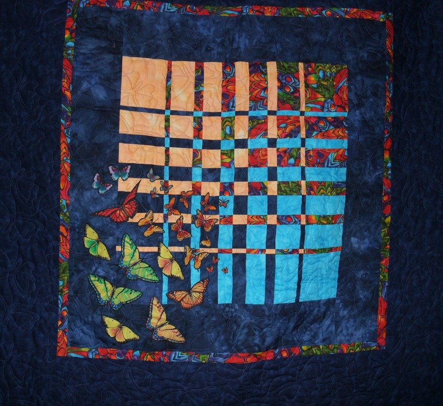| Design Source - Description | Made for my sister who loves butterflies. Inspired by the convergence quilting method by Ricky Tims. |