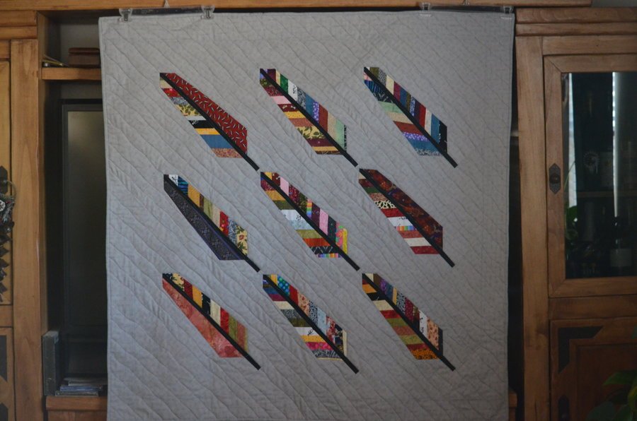 lzwhitehead Feathers at 45 - I found this quilt on Pinterest, and it took a couple of weeks to hunt the pattern down. I made this quilt for a class that I am teaching at a Local Quilt Shop. It was a great way to use strips that I had collected.