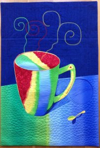| Design Source - Description | Designed for SAQA's 'Redirecting the Ordinary' exhibit which will open at Houston IQF this autumn, this is an interpretation of my coffee cup on one of my many Air Canada flights! |