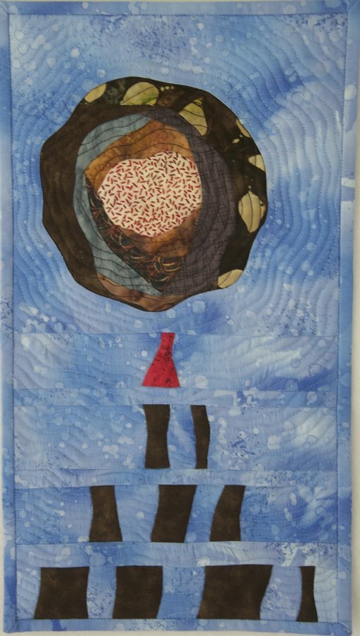 | Design Source - Description | A continuation of my exploration of the point, defined by Kadinsky as "the unknown absolute" this quilt was inspired by a swirl of hair in my dog's coat. |