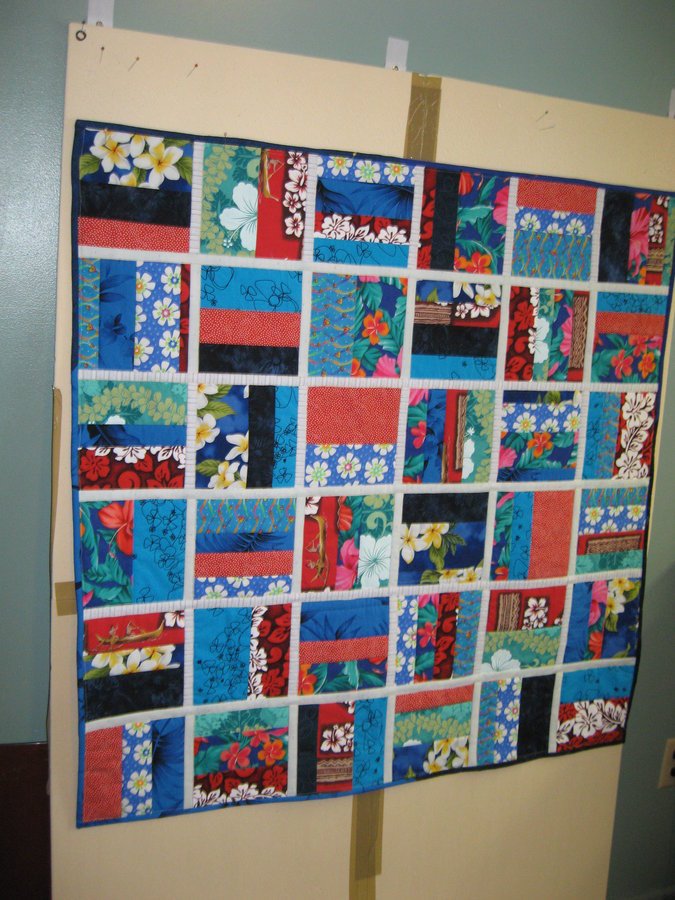 kasman Reversible Child's quilt - I used the suggestion of the Mixtape quilt and the methodology of Sharon Petersen's Reversible Quilts. The front is mostly fabric from Hawaii and the back is purchased locally. To be donated to Project Linus.