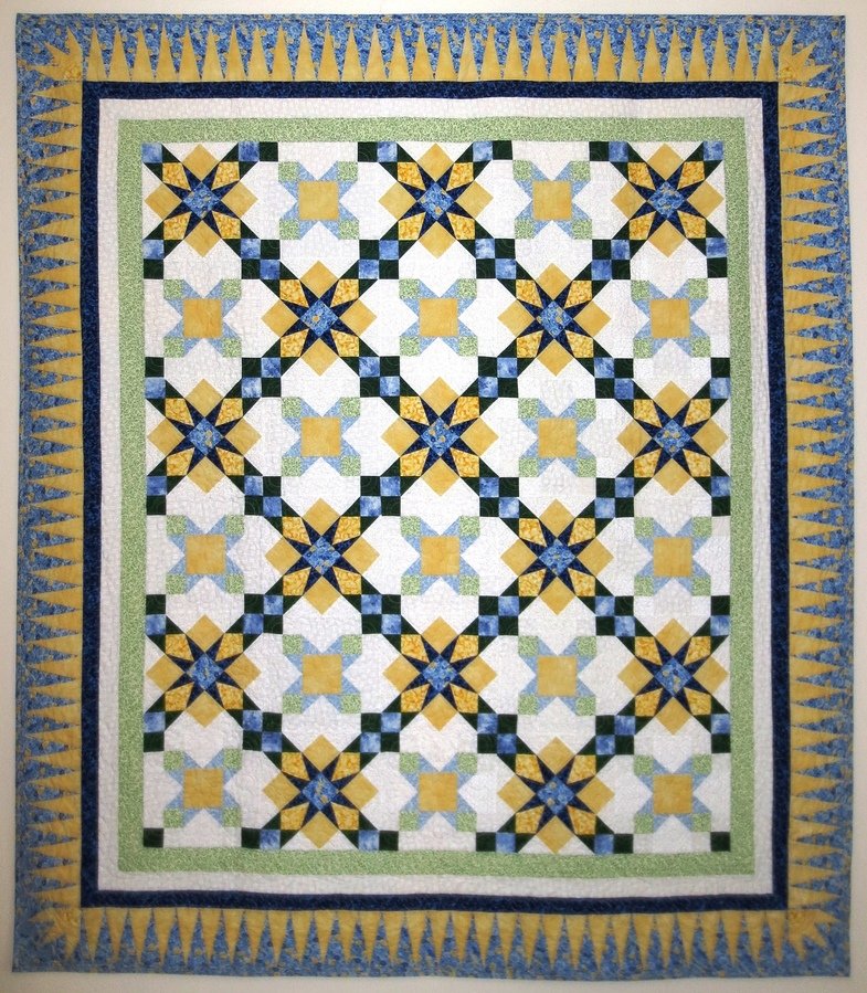 Flipper Stars and Flags - I designed this quilt on EQ5 software. I began it in 2005. I finished it in May 2014. A lot of history happened in between! It had it professionally quilted since it was too large for me to handle on my home machine. I used Ricky Tims' method of piped binding, which I love!