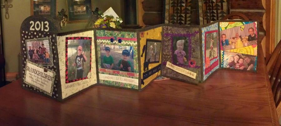 gerbigk Grandkids, 2013 - Made a fabric book with grandkid's photos and embellishments. It was a fun project. Thanks Cheryl!