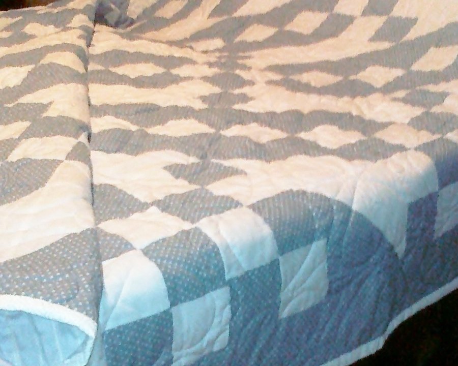 gingersews 17-Year Quilt - I started this quilt in the Fall of 1987 when I was on medical leave, and stored it away when I went back to work. In 2004, I started quilting classes at Aunt Bee's Quilting and decided to finish this quilt. In my mind, it was half-finished and so ugly (I don't know why!). When I pulled it out of storage, I was amazed! It was beautiful and completely done except for quilting & binding. I had it quilted, then added the binding, and I am so happy with it. This was my very first quilt and it took 17 years from start to finish!