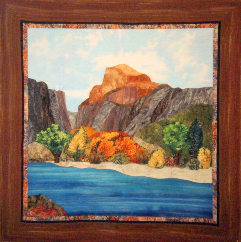 quilter1955 Autumn Splendor - The Fall season is my favorite time of the year...Plus I love landscape quilts. I bought this pattern Alpine Glow by Kathy McNeil to challenge myself...I learned to needle turn applique using the Piece o Cake video.. Highlighted the water and trees with fabric paint.. I was pleased how it all came together...