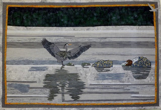 PacificGeorgygirl A Very Grey Day - "A Very Grey Day" art quilt with finished dimensions of 24" x 35". Inspired by a of a Great Blue Heron photograph by Janis Morrison - Fresh Air Photography - used by permission. Georgia Andrews, Fêteshui Studio