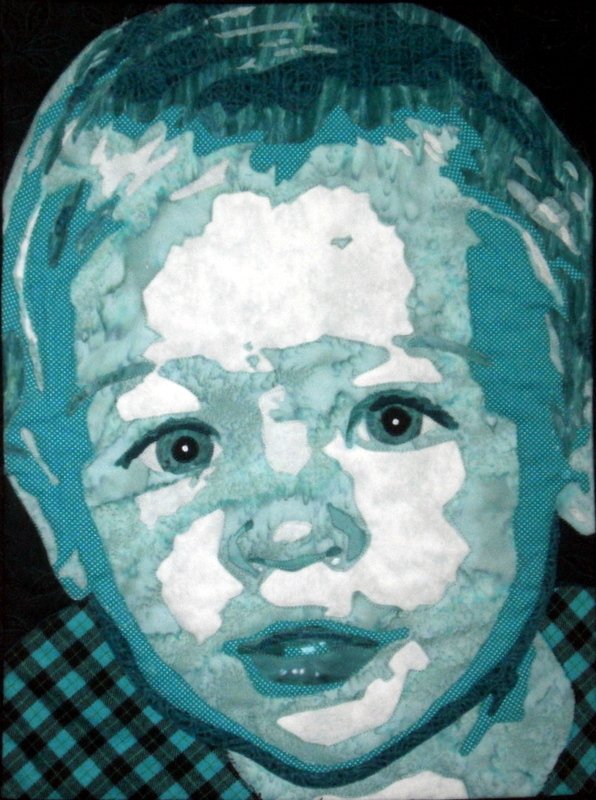 quilter1955 Just Off The Coast - Watched the Classroom lessons for Portrait Quilts by Lea McComas and loved it! I knew I had to challenge myself to make this quilt...I purchased the perfect fabric that came in a set of fat quarters with 8 different values sold by the Pincushion Boutique called Just Off The Coast...My first person to do a portrait quilt is my beautiful great nephew. I borrowed the name Just Off the Coast ,because he lives on the Coast..First time ever I finished a quilt in a week,including the label.. I have two more in my mind that I want to do...Just like a quilter, alway a million projects we want to do,but never the time.:)