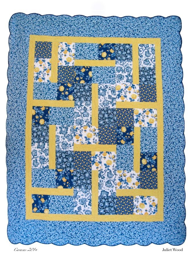 | Design Source - Description | A modern pattern that I made using traditional fabric with my first attempt at quilting feathers, probably my last! Made in my sister's favourite colours for her bed. |