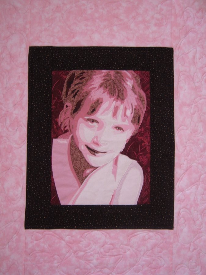 | Design Source - Description | A portrait of my niece, who loved pink at the time, and now prefers blue. Raw edge applique, and free motion quilting. |