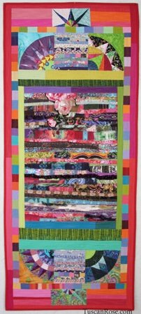 tuscanrose Walking The Scottie In Central Park - Improvisational quilt made with commercial, vintage and repurposed fabric