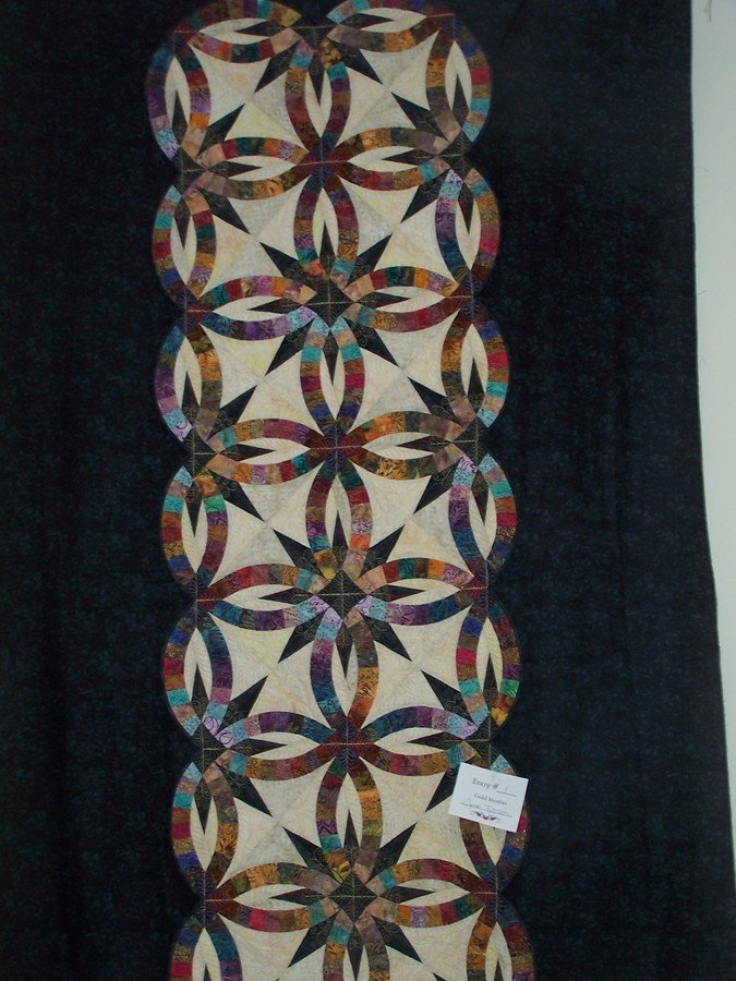 imquilting Family Circle of Love - I fell in love with this bedrunner and having always wanted to attempt a double wedding ring thought this would be a great place to start. My mom was moving to a new place and I thought this would look great on the end of her bed. A lover of batiks, this was just the project to try and use some of my collection of fabrics. Not sure I would want to make a whole quilt from this pattern but you never know...I was thrilled with the finished product!