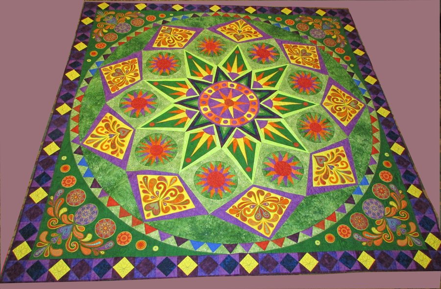 | Design Source - Description | Quilt is 86 x 86 with embroidered applique, paper piecing and regular piecing. |