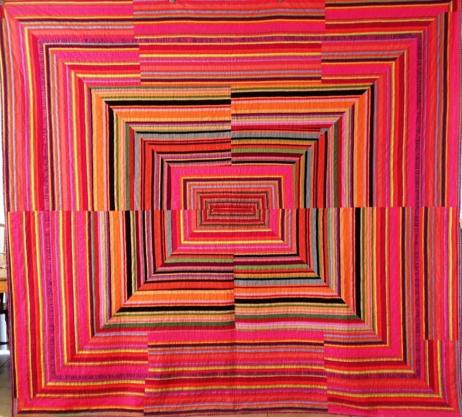 BarbCA Barb's "Striped City" - The quilt was made using squares and rectangles cut to specific sizes. Pieces were sewn together then trimmed to make six 45 degree angle sections.