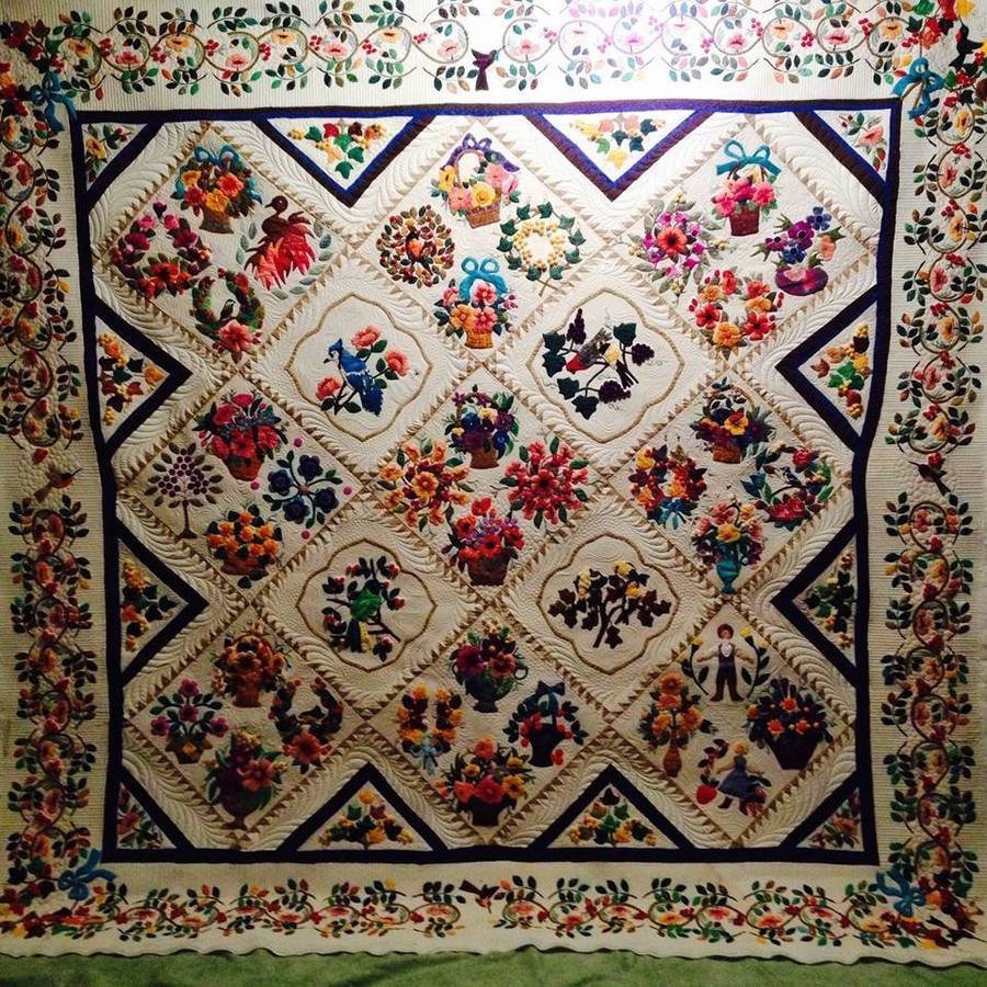 dottiedavis Sophia{1000leaves} - this quilt pattern I revised and made it my own .It took me a year+ ,some of the blocks have 20+ hours in them there,560+stuffed red berries,1600 little leaves,8 humming birds,36, 9 inch blocks,4 ,18 inch bird blocks, to many to count stuffed flowers,acorns,grapes, one spider,one lady bug, It belongs to Sophia my great grand granddaughter who loved the red berries from the first. and so many booboos that I cant count and Bonnie made invisible.