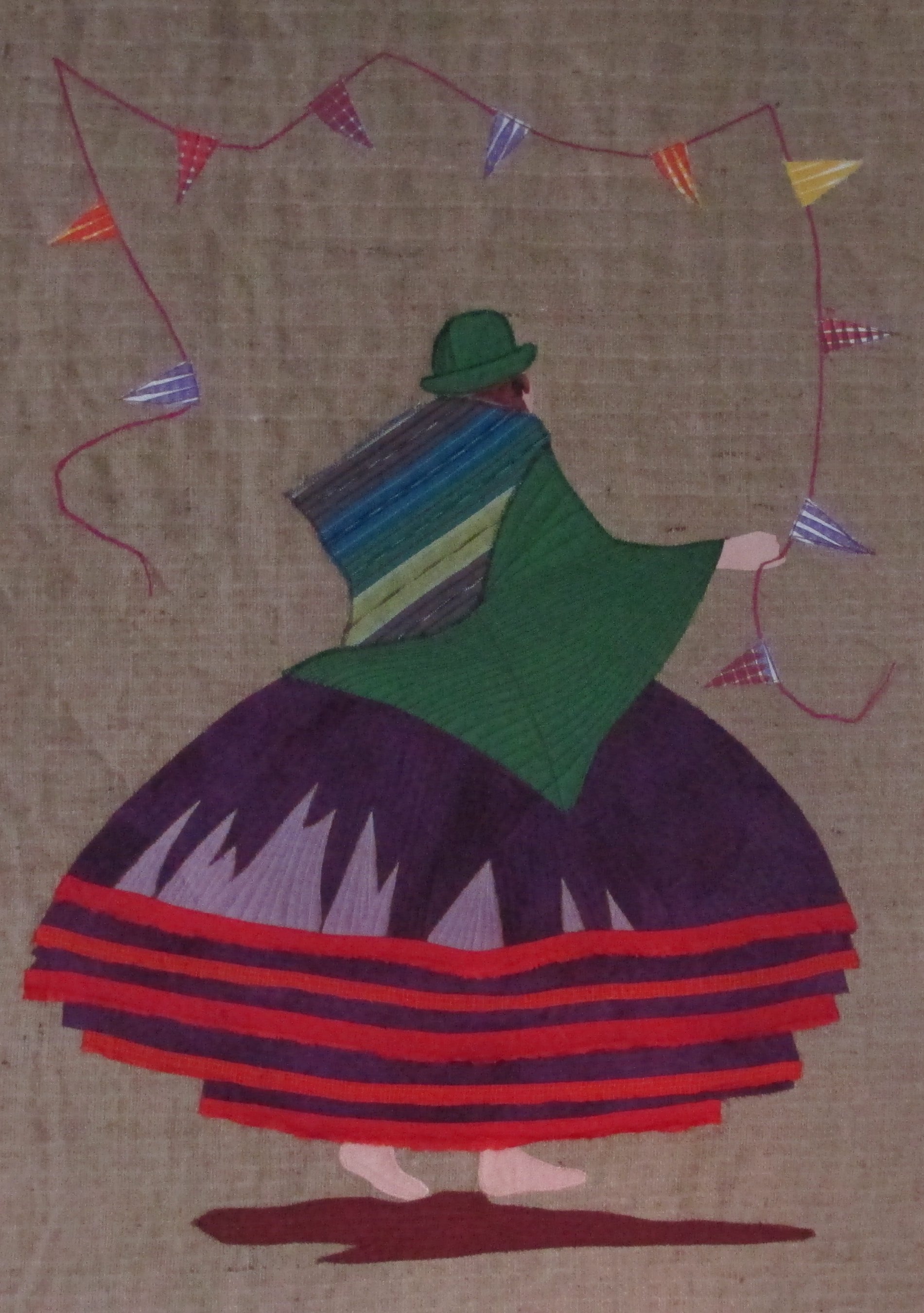 Cuauhtemoc "Fiesta 2" is a version of Fiesta 1, except I traded out the silks for cottons and a burlap backing.