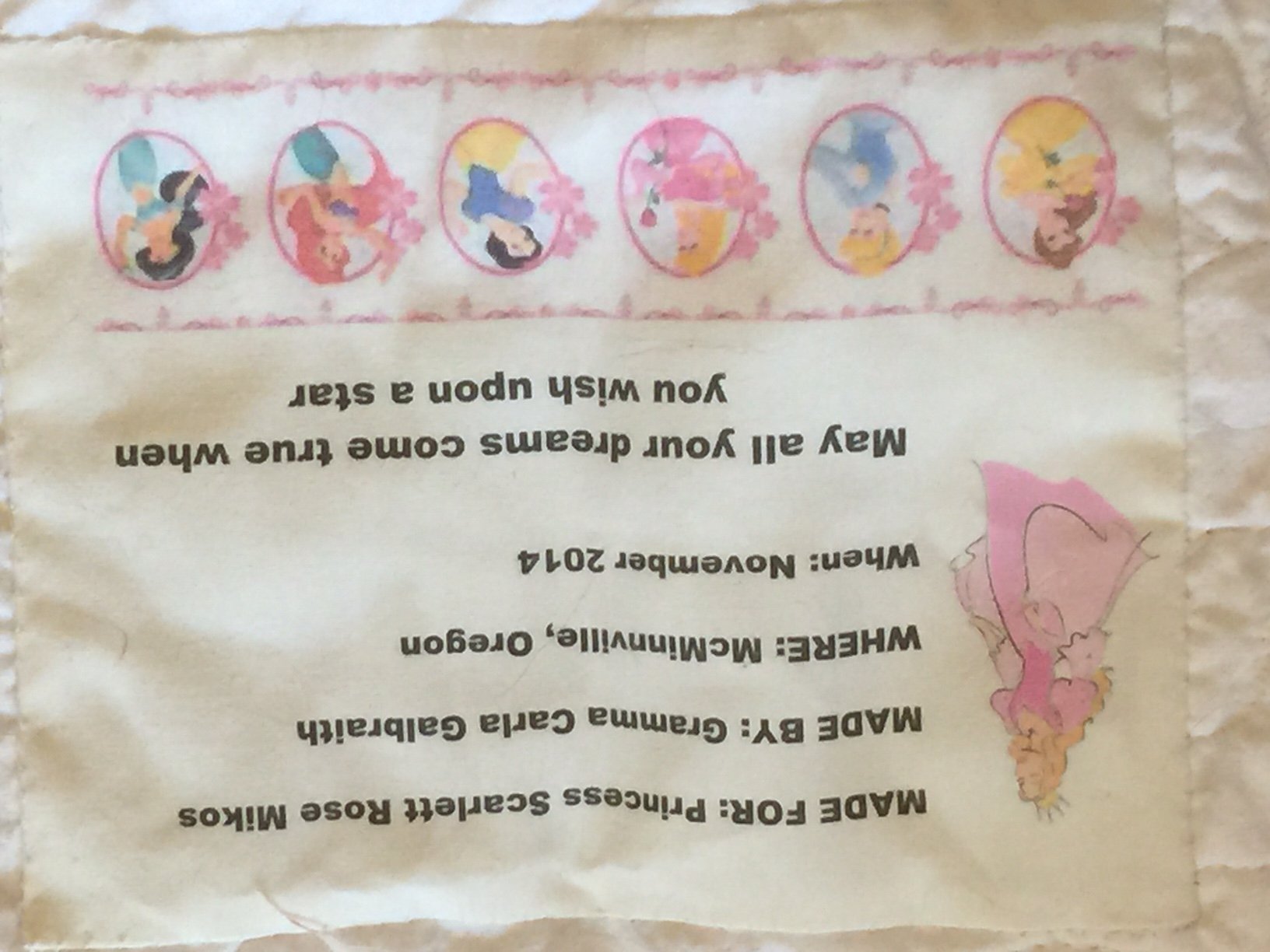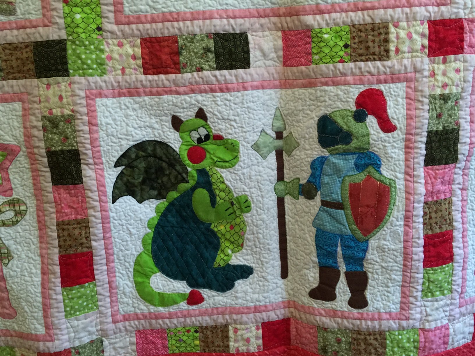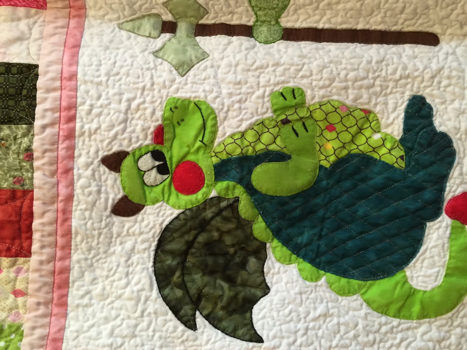 Stinki Pieced and Appliqued Quilt with Embroidery embellishments made for my Granddaughter Scarlet Rose.