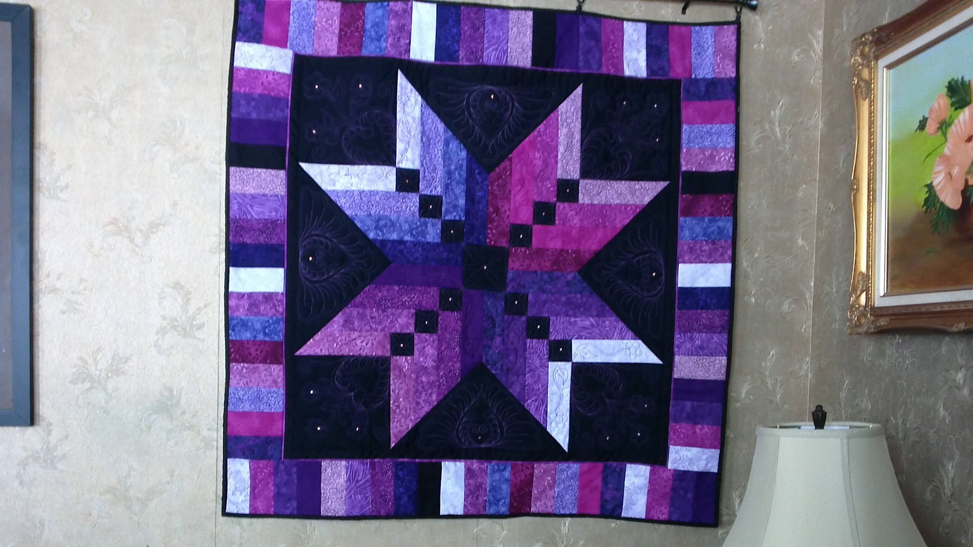 cstyles Thus wallhanging was made after viewing the Binding Tool Star video from the Missouri Star Quilt Co. I called it Star Crossed Lovers because Valentine's Day is just 2 days away. My 7 year old grandson, Jacob, chose the setting. The wallhanging was quilted on my Elna Quilters Dream.