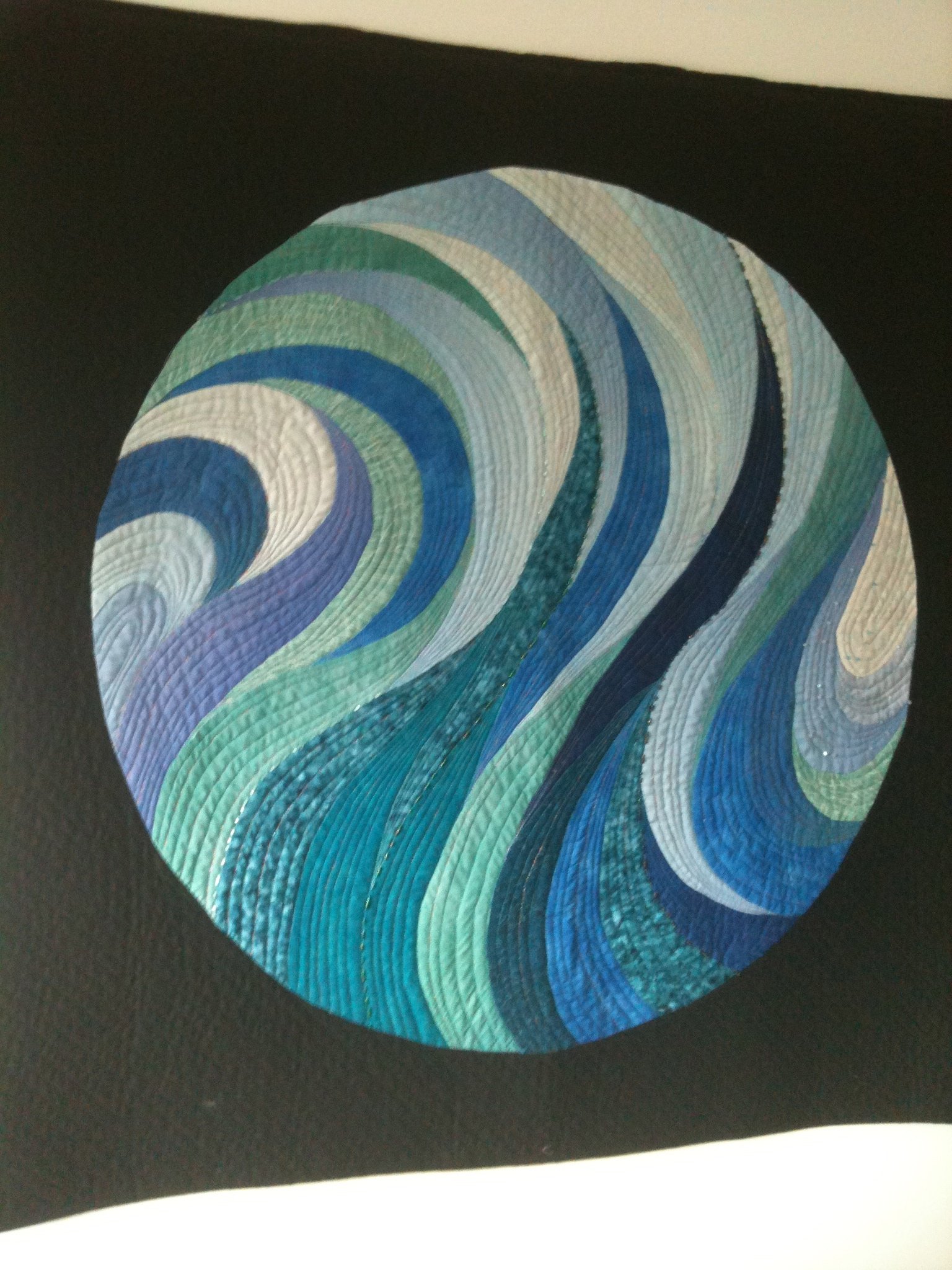 This was one of her early patterns and my first attempt at freezer paper applique. She was an inspiring teacher. I would love her to know I finished it and quilted it myself and embellished it with beads found in an Abu Dhabi souk !!