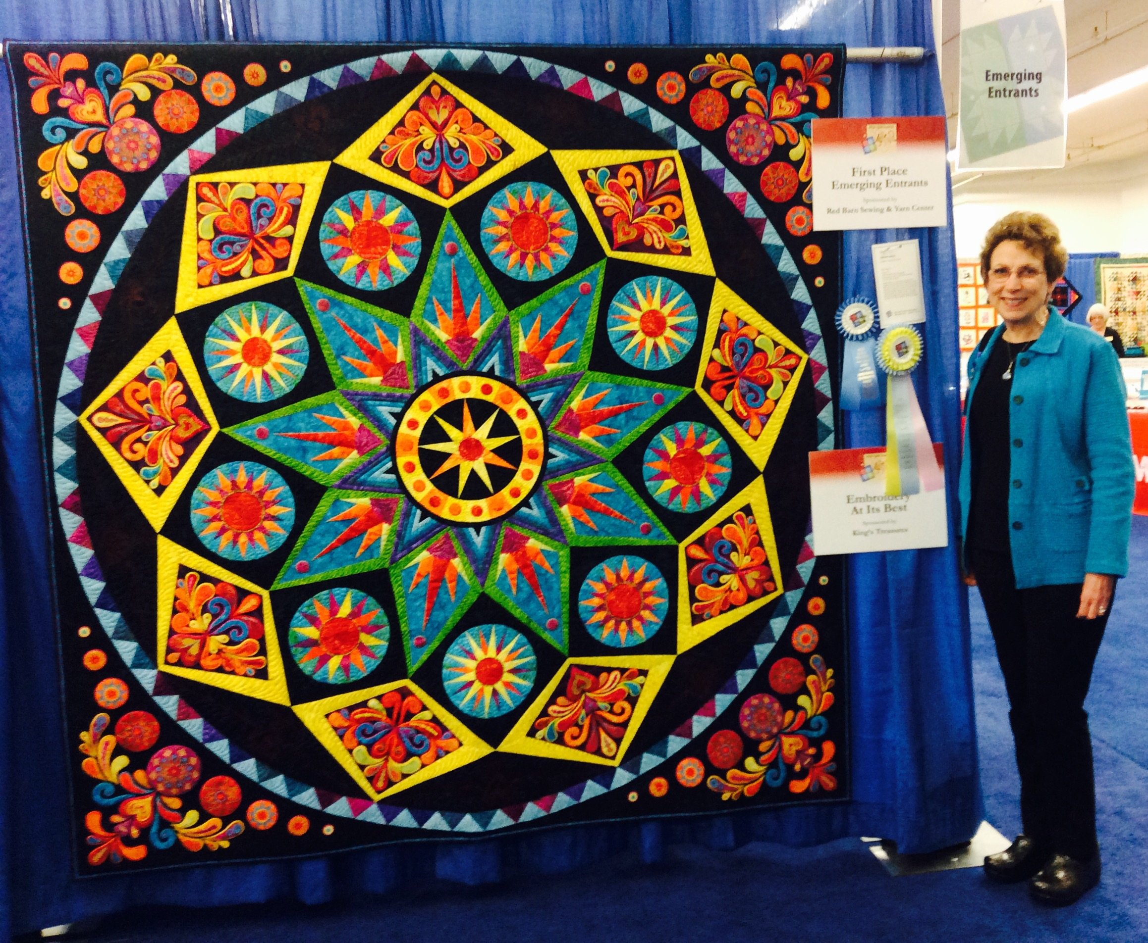 Celestial Sedona is Sarah Vedeler's Sedona Star, the Quilt Show's 2012 Block of the Month. It took me three years to complete, but along the way I learned how to apply a variety of techniques and perfect my quilting skills. It recently won two ribbons at MQX New England, First Place and Embroidery at its Best.