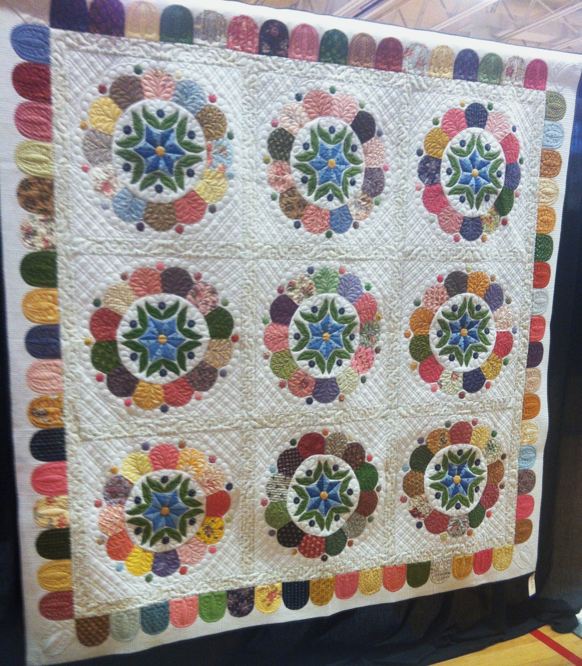 makesgeese What makes me happy? My fabric stash does, and a needle and thread, and the time I spent stitching on this quilt. I hand pieced and hand appliqued this quilt from the pattern, "Blessings", by Robyn Falloon.