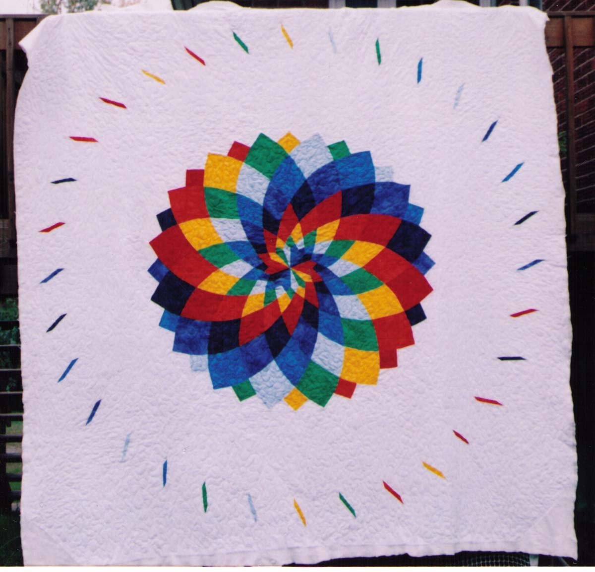 rbquilt This was a wedding gift and made base off the dalia quilt pattern. Fabric is moda marbles.