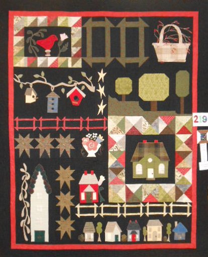 rahhawley My local quilt presented a block of the month to the members. I decided to make mine using felted wool for the applique. The background and piecing is all 100% cottons. The wool applique was fused and then machine appliqued to the background, I used my Bernina to do some of the emblishing...flowers and tendrils. It won 3rd place in the machine quilting catagory at my local guild show 2015.