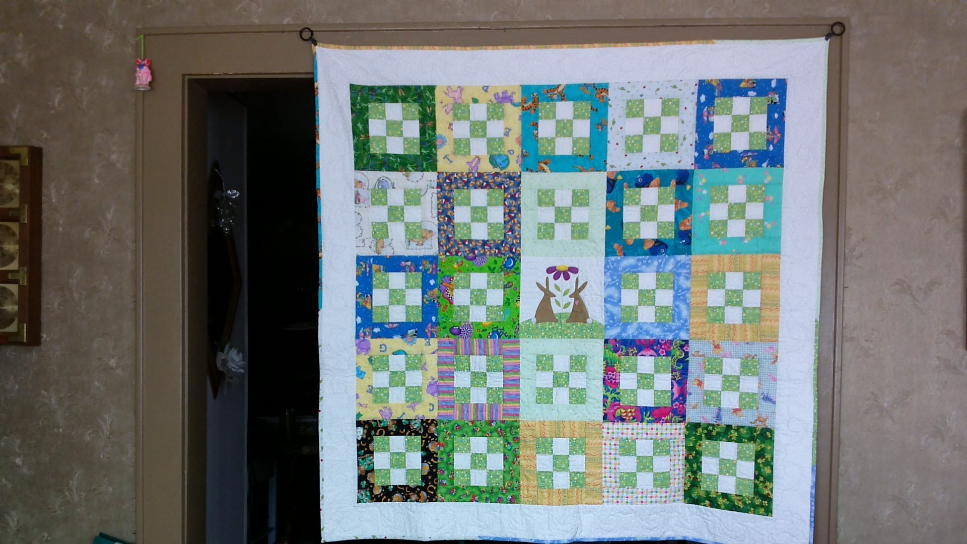 cstyles Baby quilt made for great niece/nephew due in November. Centre square from 2015 BOM Quilt designed by Lynette Anderson surrounded by veriation of a 9 patch. Machine pieced, appliqued and quilted.