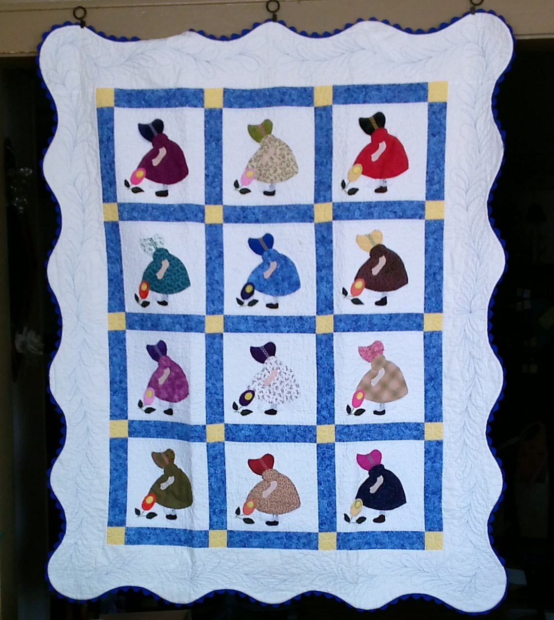 cstyles Hand appliqued Garden Girl Quilt, machined pieced & quilted with a ric-rac binding