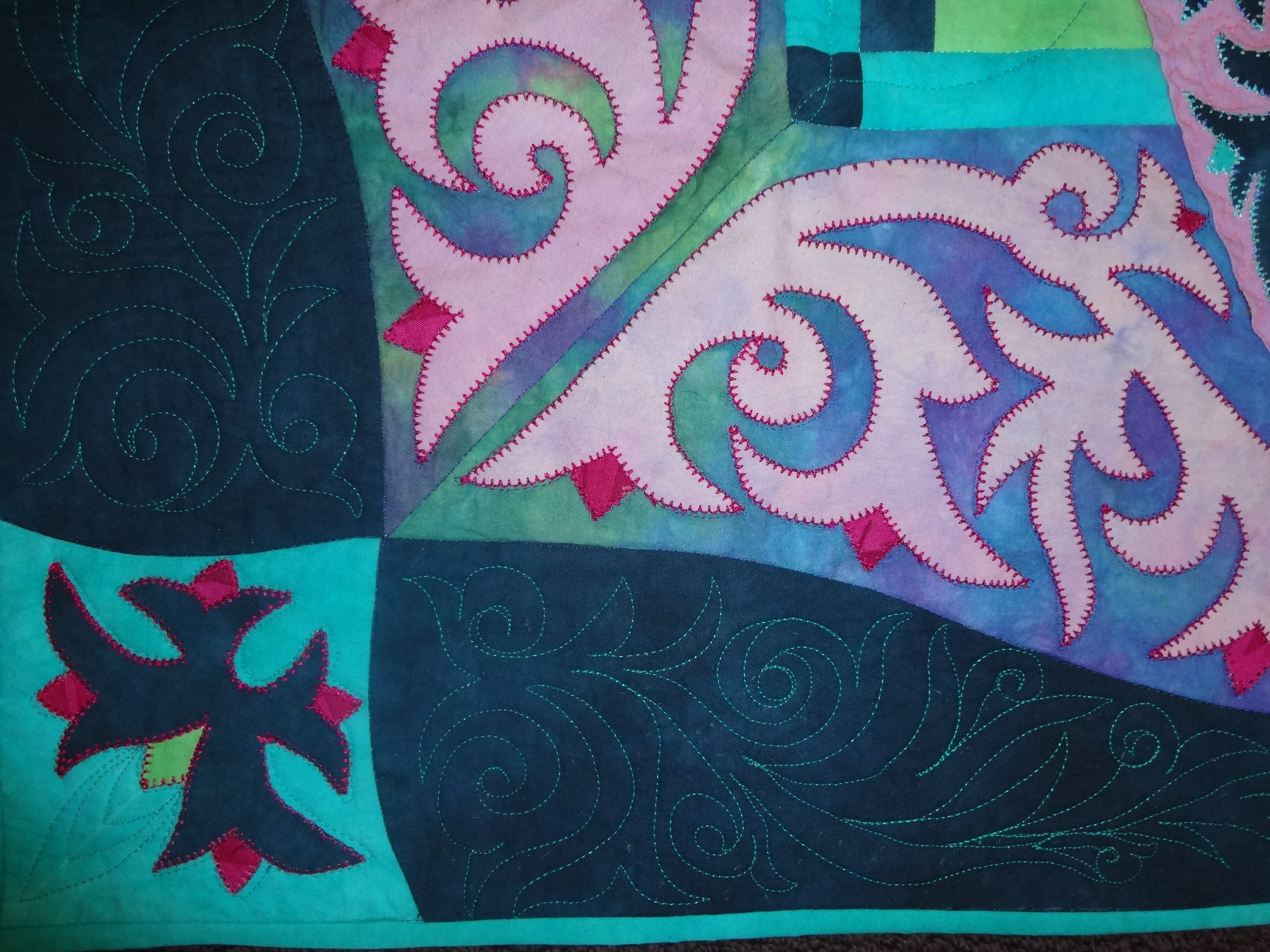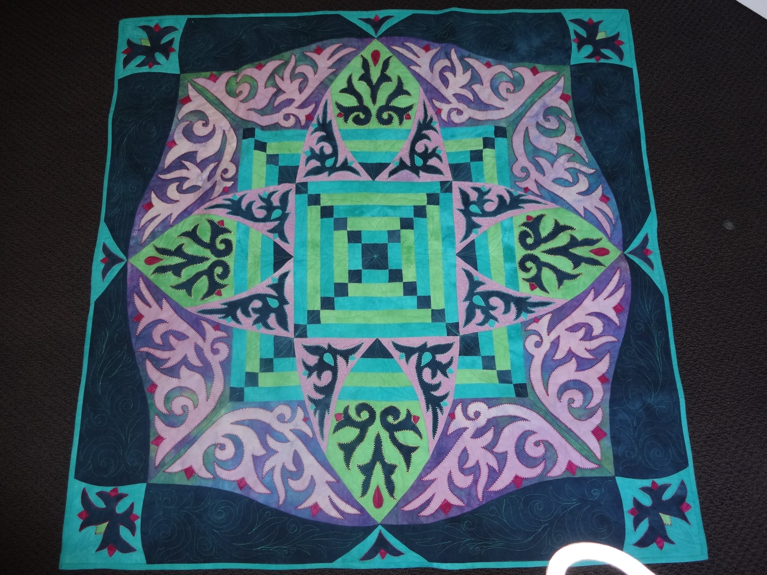 licensegirl This was Ricky Tims BOM 2014. This was a fun and relatively quick quilt to make. I love the techniques Ricky taught with double blanket stitch applique on all the piecing. It also uses his hand dyed fabrics. Can't wait to take it further in the next quilt!