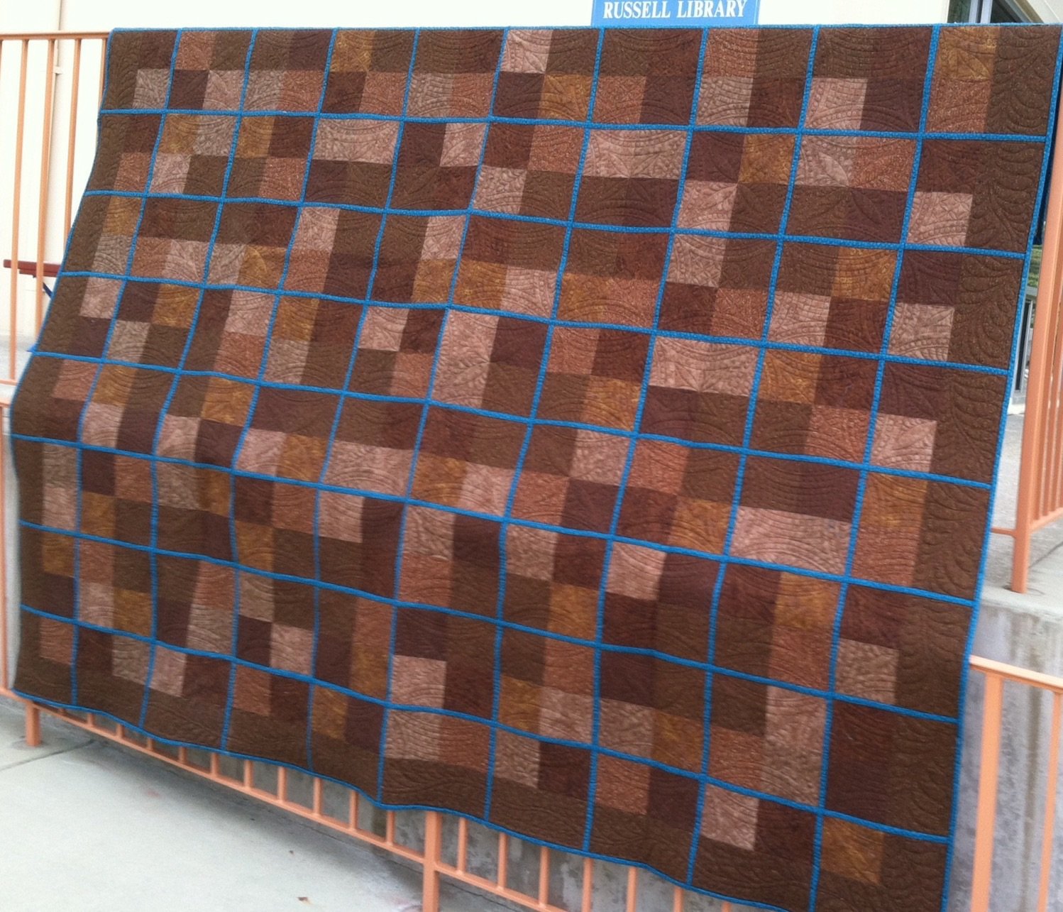 easmithnp My niece wanted teal & chocolate for her wedding quilt. I felt a simple quilt design would be better for these colors. It really shows off the exquisite quilting done by my very talented friend Esther Abshier.
