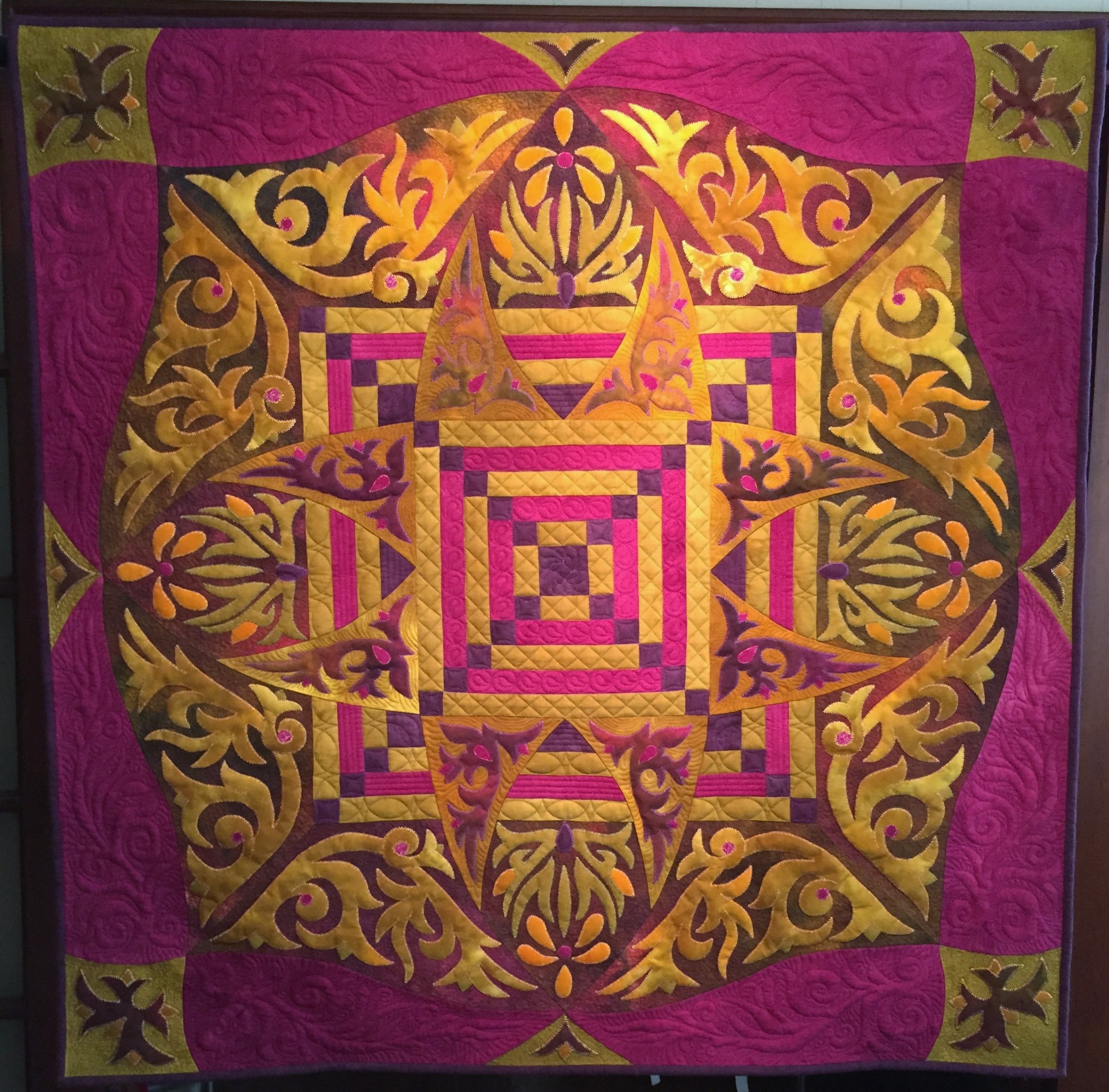 dreamquilter This three month Block of the Month kit from Ricky Tims' studio took me a little longer to make! I guess you could say I savored the journey. His pattern and hand-dyed fabrics were used. Excellent printed and video instructions and full-sized pattern including patterns for quilting were provided. I used the quilting motifs provided in the pattern for the outer border, but used other designs for the remaining areas.