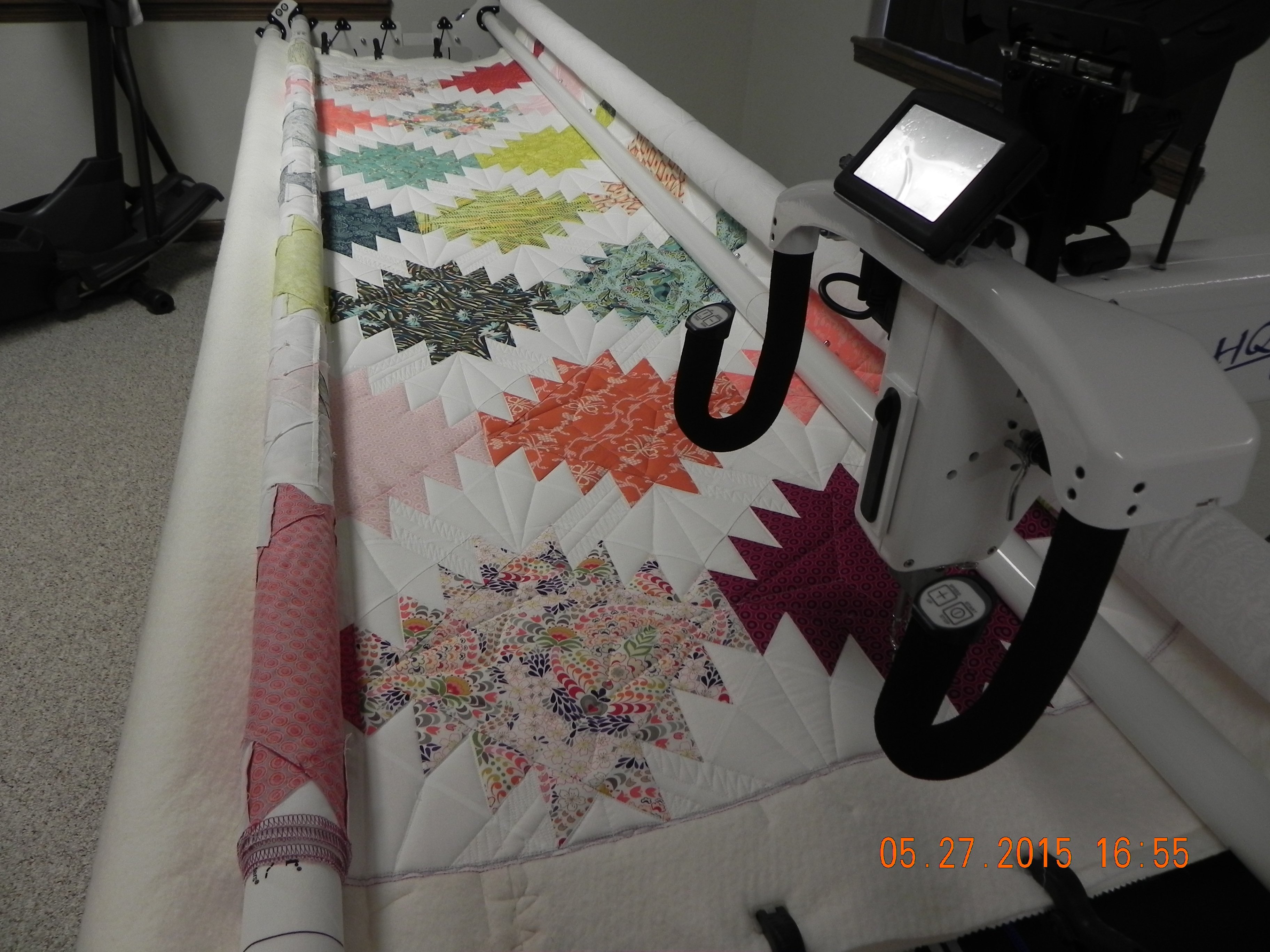 I used my precious gems in my stash of favorites and got to work on this colorful quilt.